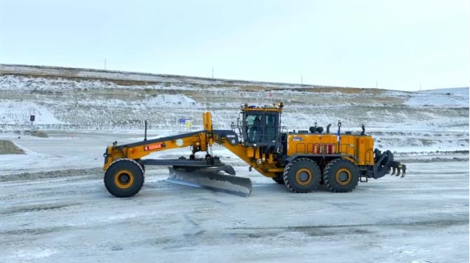 自开展远程遥控试运行驾驶至今,徐工GR5505平地机运行时长累计达三百小时以上,在零下42℃低温下系统运行安全稳定,为极端工况的施工人员提供可靠保障。
